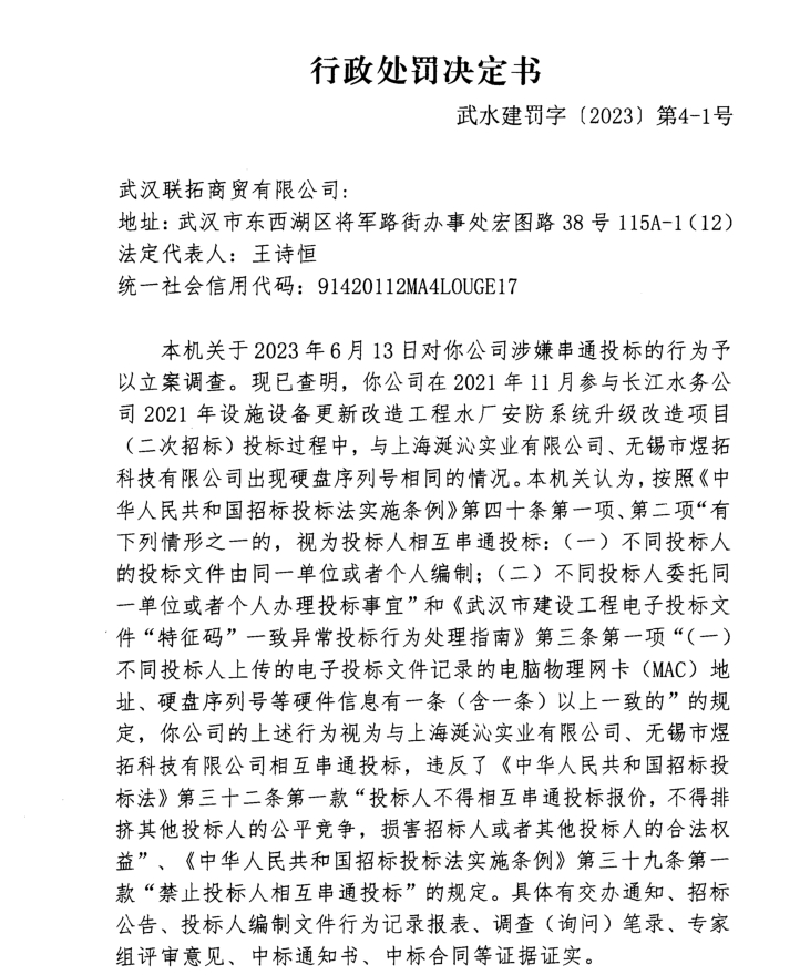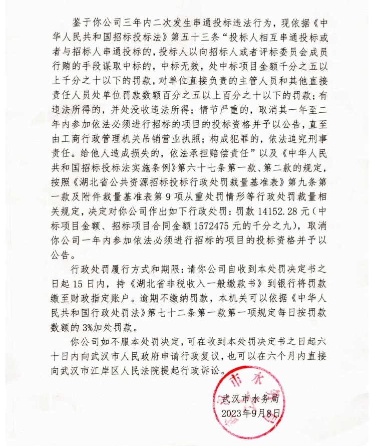 处罚决定书(武水建罚字〔2023〕 第4-1号)