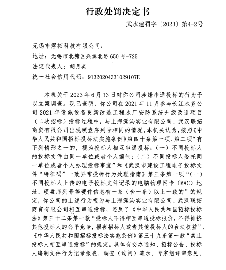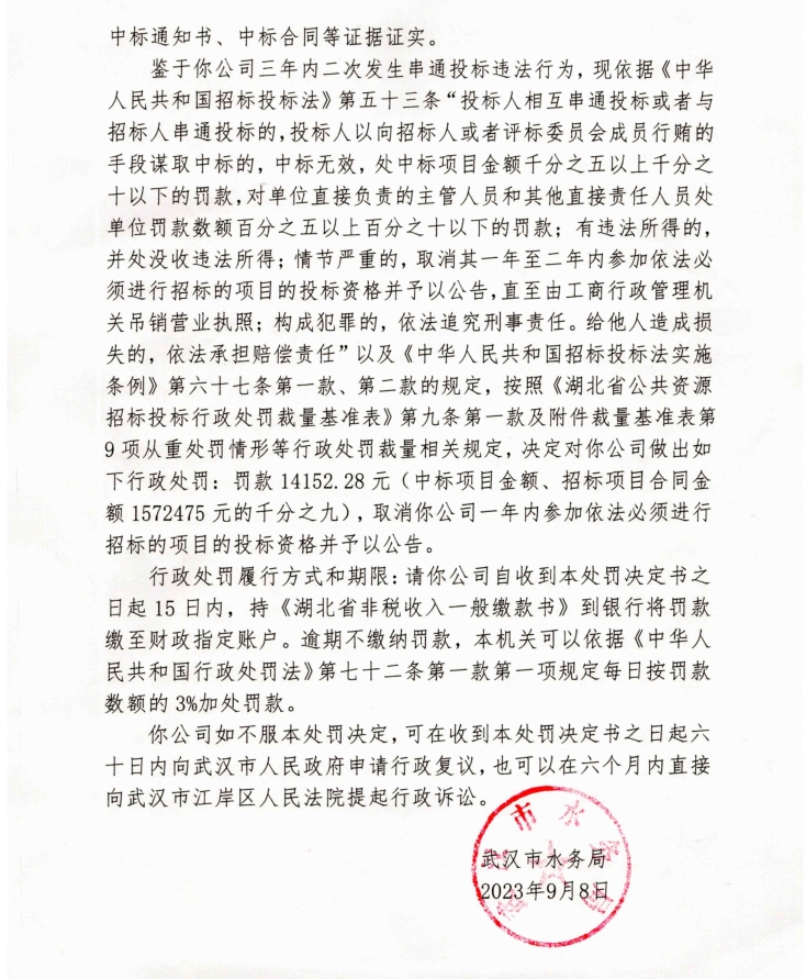 处罚决定书(武水建罚字〔2023〕 第4-2号)