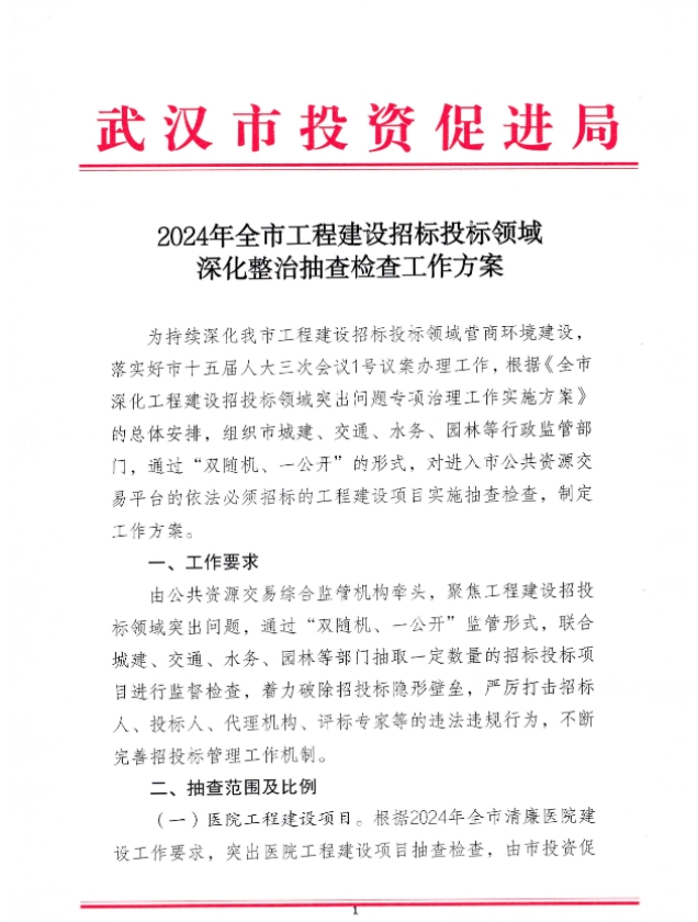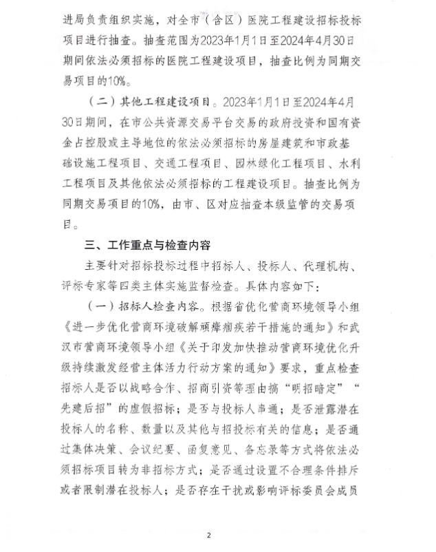 2024年全市工程建设招标投标领域深化整治抽查检查工作方案