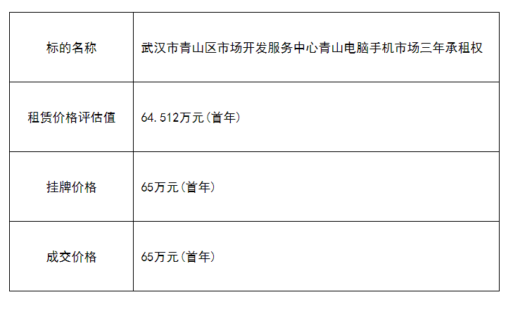武汉市青山区市场开发服务中心青山电脑手机市场三年承租权
