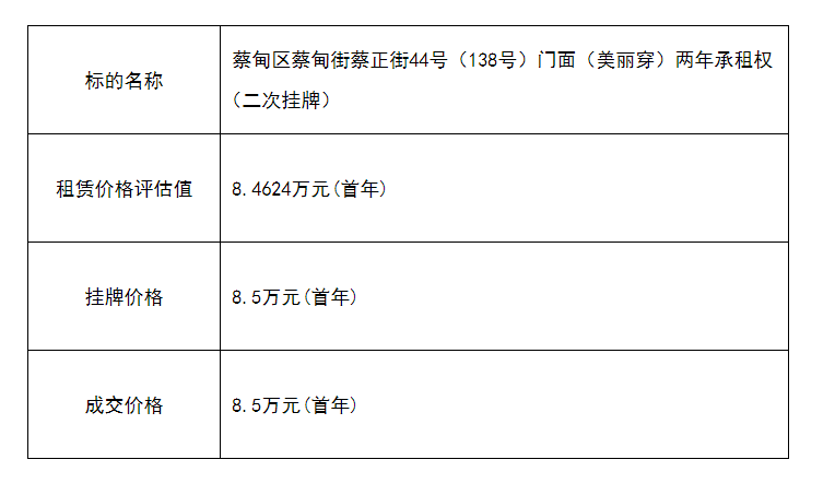 蔡甸区蔡甸街蔡正街44号(138号)门面(美丽穿)两年承租权(二次挂牌)