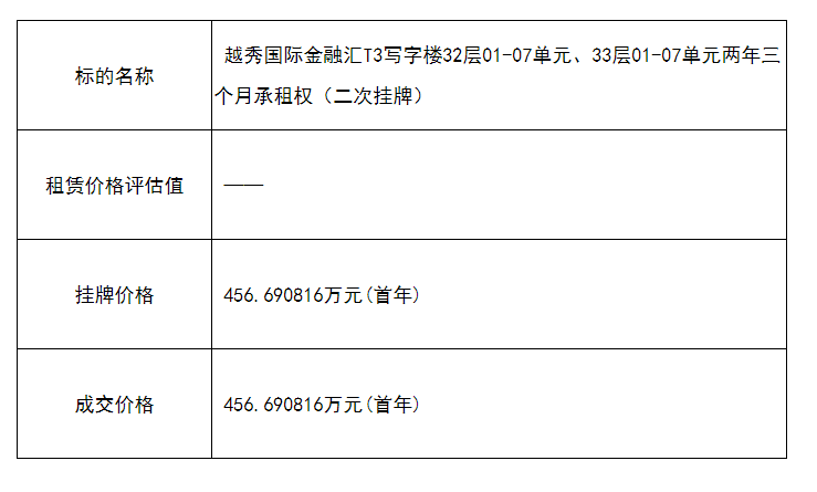 越秀国际金融汇T3写字楼32层01-07单元、33层01-07单元两年三个月承租权(二次挂牌)