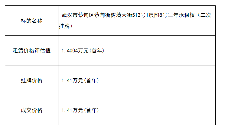 武汉市蔡甸区蔡甸街树藩大街512号1层附8号三年承租权(二次挂牌)