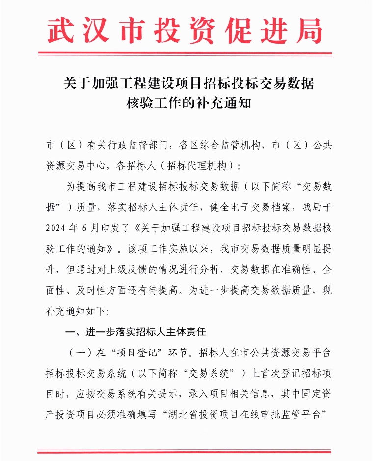 关于加强工程建设项目招标投标交易数据核验工作的补充通知