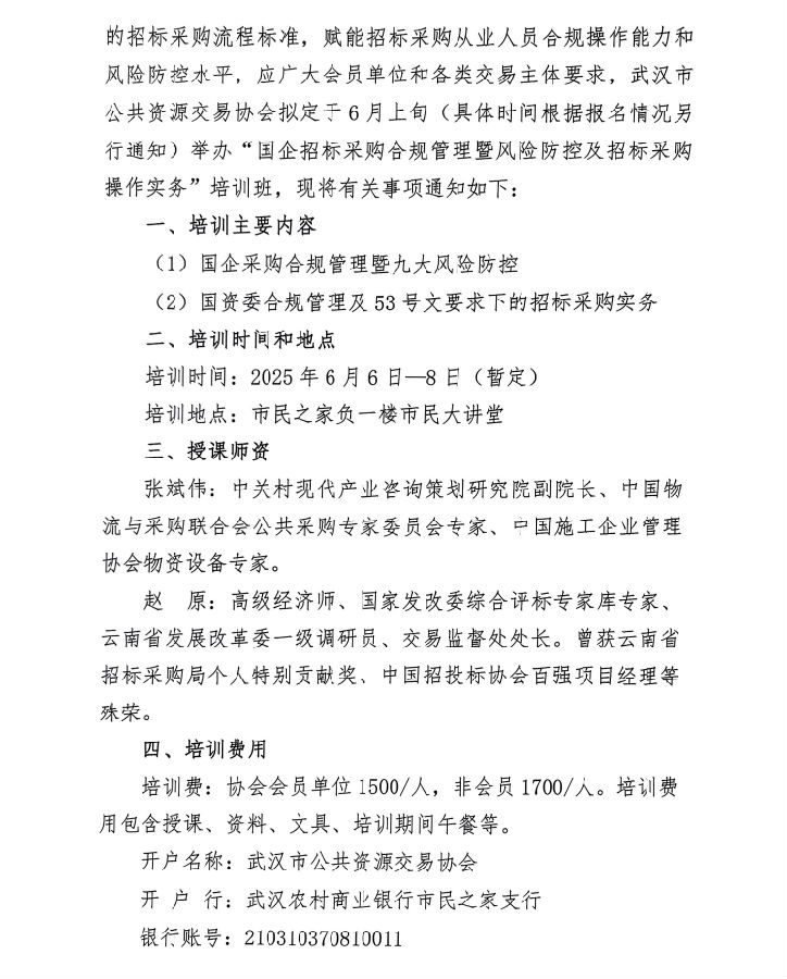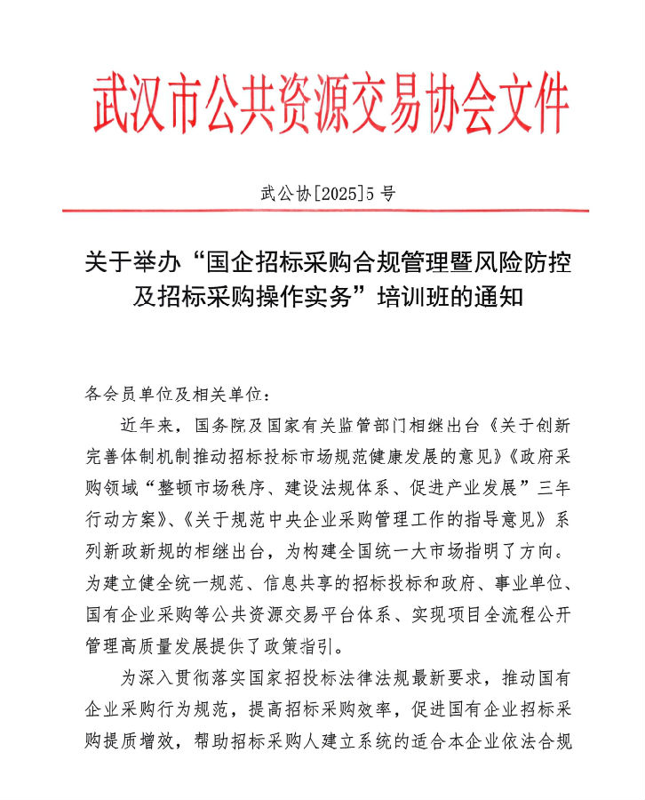 关于举办“国企招标采购合规管理暨风险防控及招标采购操作实务”培训班的通知