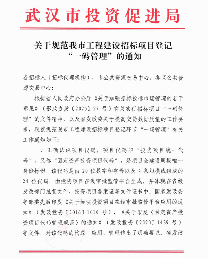 关于规范我市工程建设招标项目登记“一码管理”的通知